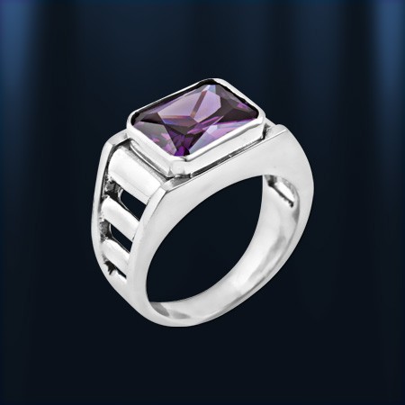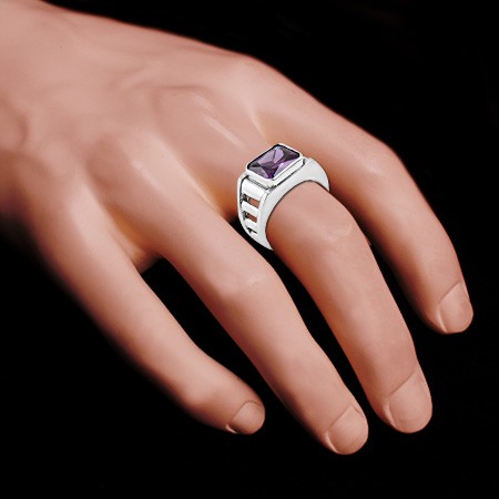 Мужское кольцо из черненного серебра 925 пробы с синтетическим аметистом (7 х 13 мм)
