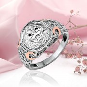 Мужской перстень-печатка из серебра 925 пробы, украшенный сверкающими циркониями, красным золотом 417 пробы и рельефным мотивом льва. Каждому мужчине хочется иметь свой стильный акцент, дорогую вещь, подчеркивающую статус.