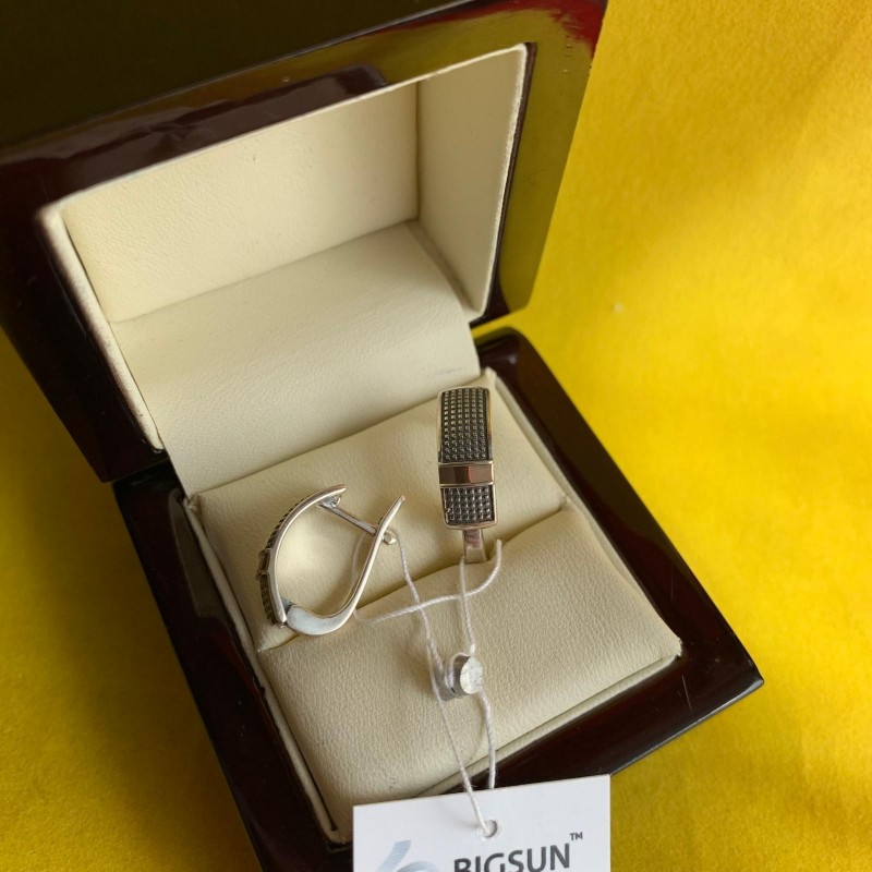 Очаровательные серьги из черненого серебра 925 пробы и золота 375 пробы. Они прекрасно подчеркивают изысканность, женственность и очарование своей обладательницы.