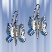 Серьги "Бабочка" серебро 925. Крылья покрыты голубой эмалью. Длина около 35 мм.