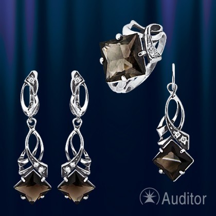 Кольцо и серьга Русский серебряный дымчатый топаз