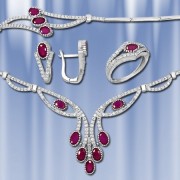 AUDITOR - Изготовлено для Auditor GmbH Комплект из серебра 925 пробы с рубинами и бесцветными цирконами состоит из колье 45 см, браслета 19 см, кольца и серег. Серьги с английским замком – просто, надежно и долговечно. Ювелирные изделия прекрасно подчеркнут нежность, очарование и естественность вашей красоты.