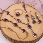 Комплект состоит из сережек, браслета, колье и кольца!