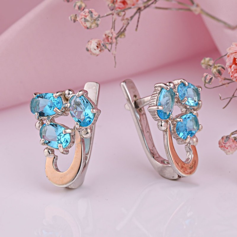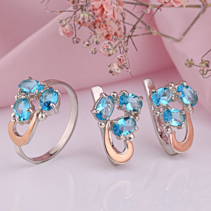 Вставки: 6 голубых овальных фианитов, 6,0 х 5,0 мм