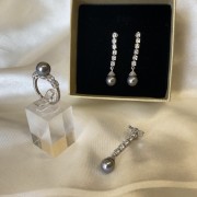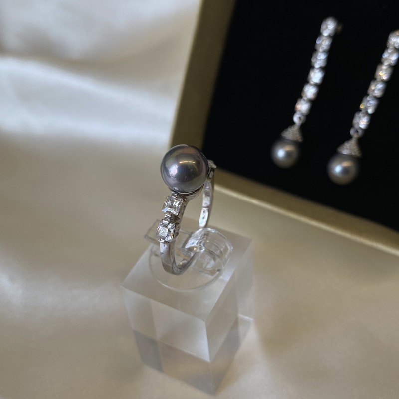 Вставка: 4 квадратных циркония 3,0 х 3,0 мм; 1 жемчужина Ø 8,0 мм