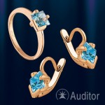 Комплект состоит из кулона, кольца и сережек-пусетов.