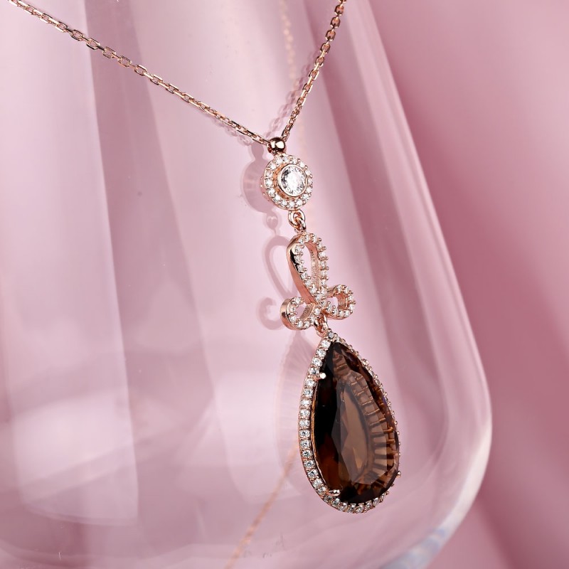 Позолоченное серебряное колье с дымчатым кварцем и цирконием