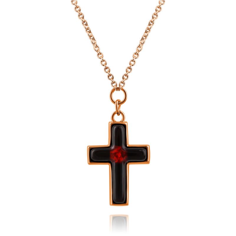 Колье из позолоченного серебра 925 пробы, украшенное янтарным крестом. Якорная цепь!