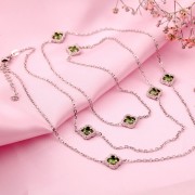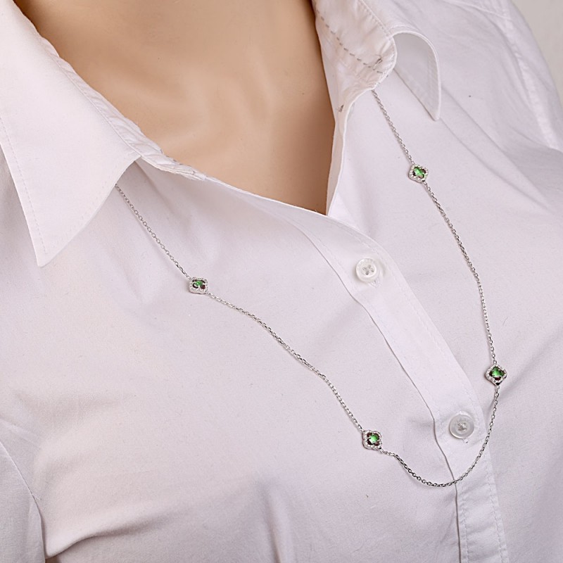Очаровательное, нежное колье с очаровательными циркониями и уникальными султанитами необычной формы. Колье выглядит лаконично и стильно в красивой оправе из серебра 925 пробы. Прекрасная возможность побаловать себя или подарить близкому человеку подарок, который подчеркнет нежность, очарование и естественную красоту! Якорная цепочка-плетка с ромбовидной огранкой.