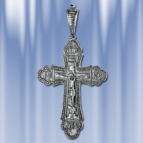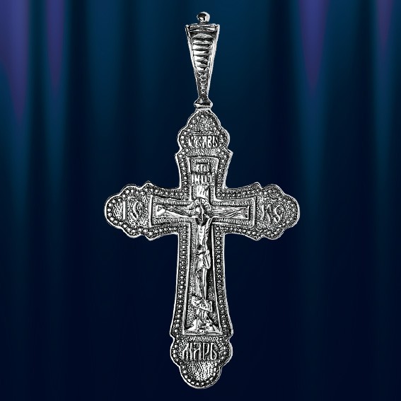 Крест с распятым Христом из черненого серебра 925°. Высота около 52 мм, ширина около 28 мм.