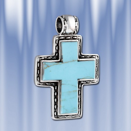 Крест-подвеска из русского серебра и бирюзы.