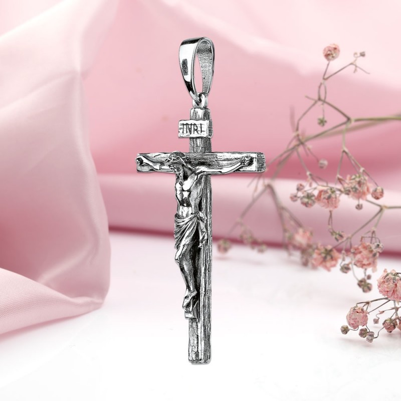 Серебряный крестик с распятием и INRI