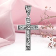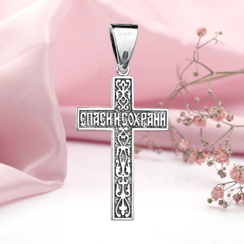 Серебряный нательный крест из черненого серебра 925 пробы! На спине надпись на русском языке: «Сохрани и сохрани». Не царапается при носке.