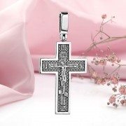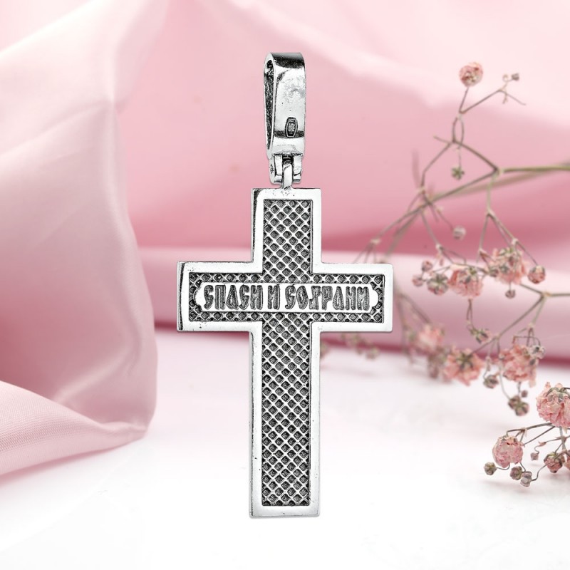 Серебряный нательный крест из черненого серебра 925 пробы! На спине надпись на русском языке: «Сохрани и сохрани». Не царапается при носке.