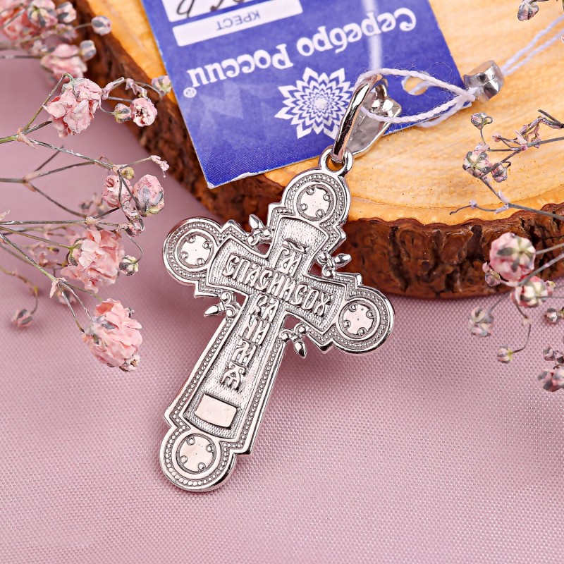 Серебряный крест с распятием из серебра 925 пробы, с родиевой поверхностью! На спине выгравирована надпись: «Спаси и сохрани». Не царапается при ношении.