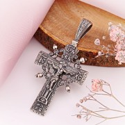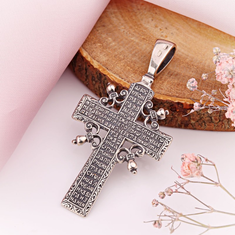 Серебряный крест с распятием. Крест груди Сильбера с распятием из почерневшего 925 серебряного серебра! Надпись молитвы расположена на спине. Не царапайся при ношении.
