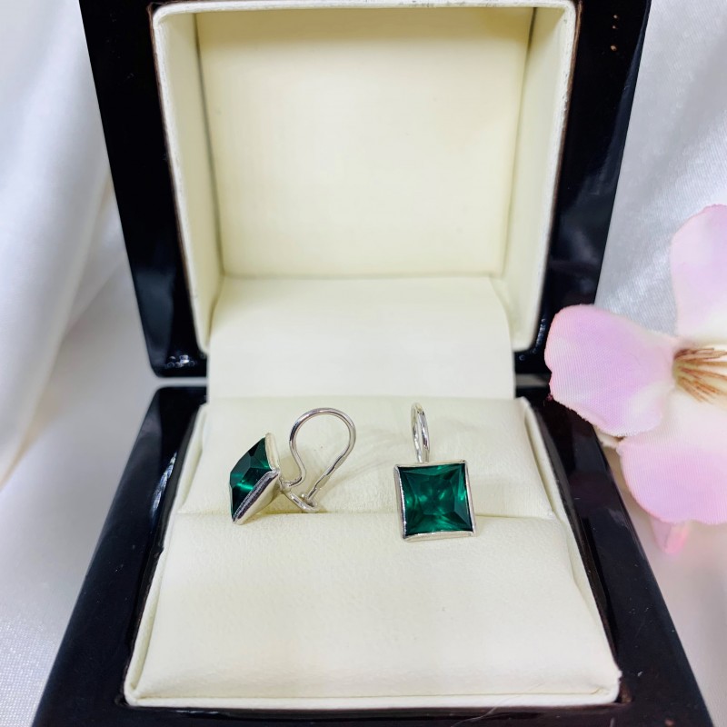 Красивые серьги из серебра 925 пробы со вставкой из очаровательного изумрудного циркония.
