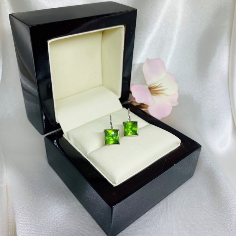 Красивые серьги из серебра 925 пробы со вставкой из чарующего зеленого циркония. Родиевое покрытие! Эти серьги прекрасно украсят вашу маленькую принцессу!