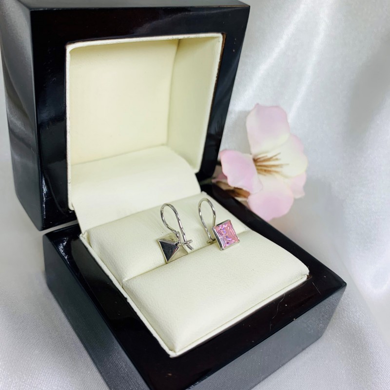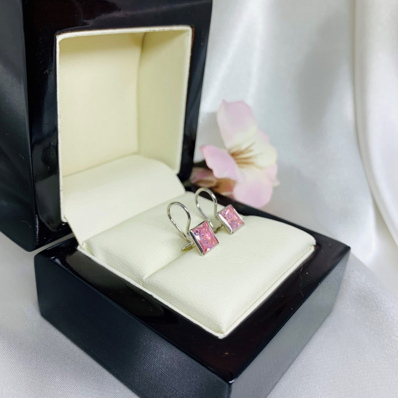 Красивые серьги из серебра 925 пробы со вставкой из очаровательных розовых цирконий. Родиевое покрытие! Эти серьги прекрасно украсят вашу маленькую принцессу!