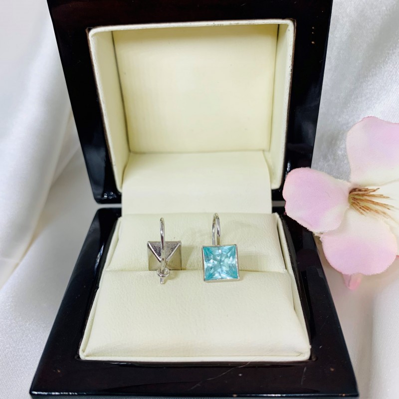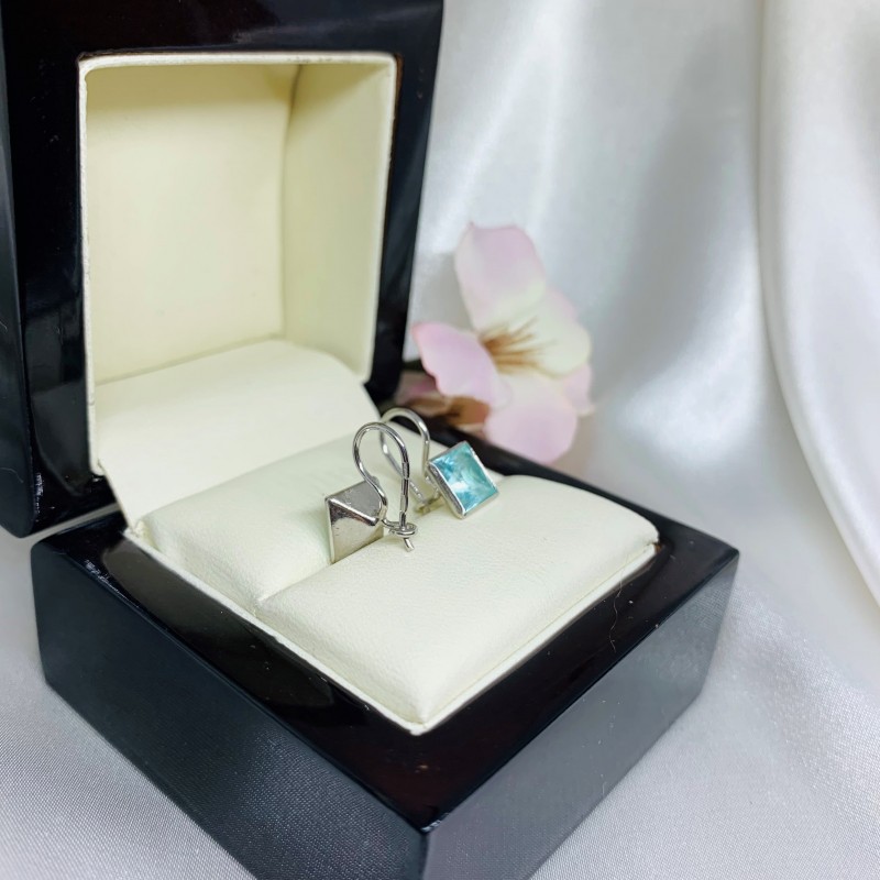 Красивые серьги из серебра 925 пробы со вставкой из очаровательных голубых цирконий.