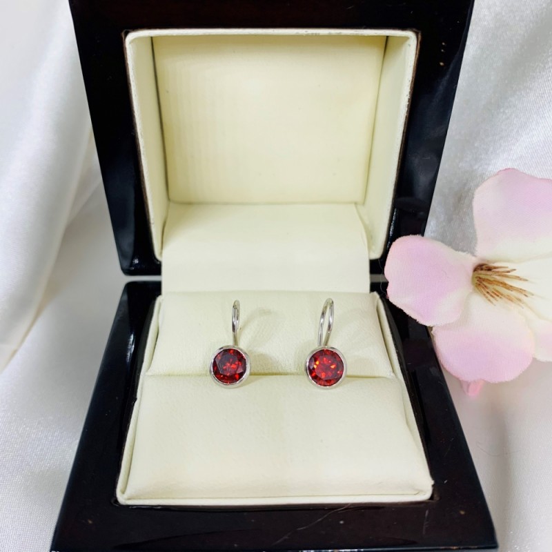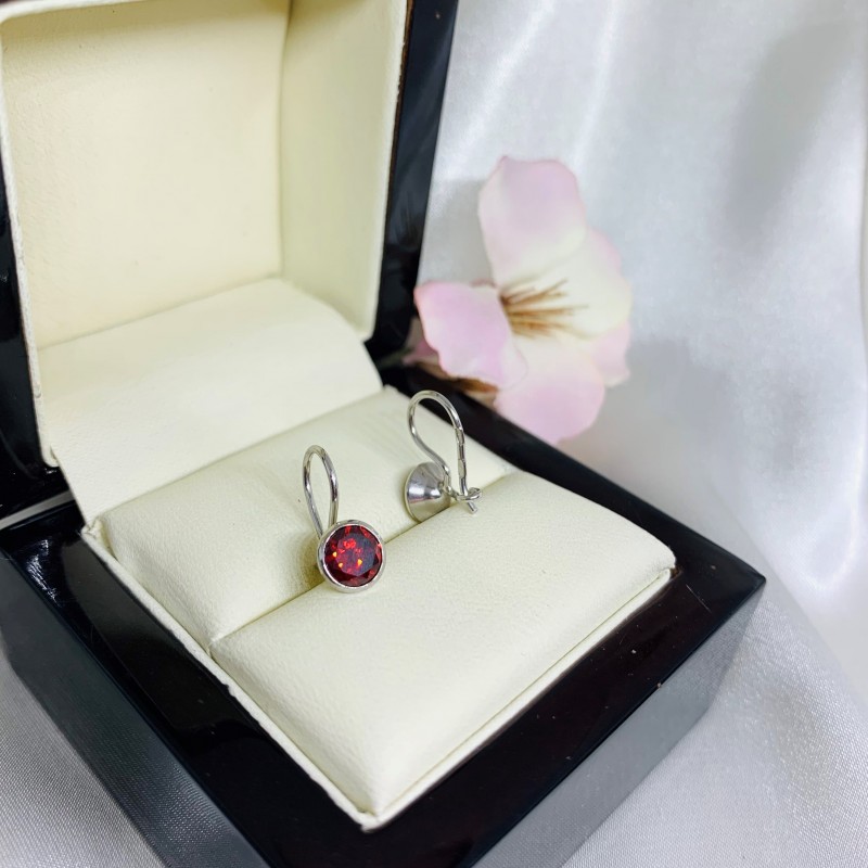 Красивые серьги из серебра 925 пробы со вставкой из очаровательного красного циркония.