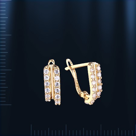 Серьги из русского желтого золота 585° с цирконом Ø 1 мм. Высота ок. 10 мм., ширина ок. 4 мм.