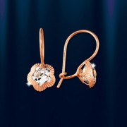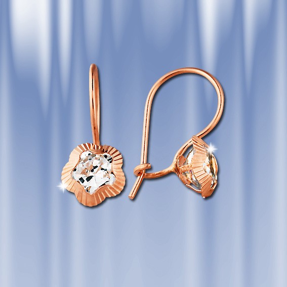 Серьги с цирконом (бесцветным) из красного золота 585 пробы. Высота ок. 16 мм., ширина 8 мм.