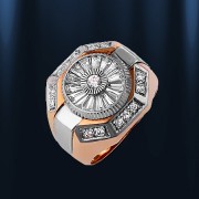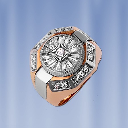 Мужское кольцо из русского золота 585°, двухцветное. Вставка: Циркон Ø 1 мм и Ø 3 мм.