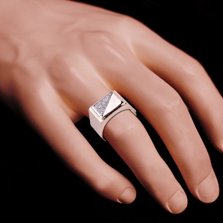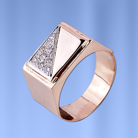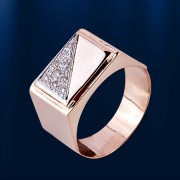 Мужское кольцо из красного/белого золота 585°. Вставка: Бриллиант 0,30 карата. Внутренняя поверхность кольца отштампована золотом.