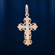 Крест-подвеска из русского золота 585°, покрытого родием, двухцветный