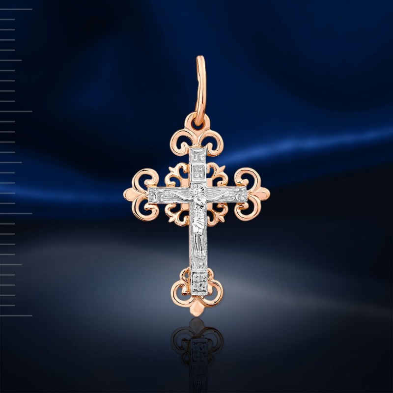 Крест-подвеска из российского золота 585 пробы. Двухцветный