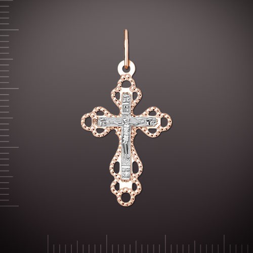Крестик-кулон из русского золота 585°, двухцветный