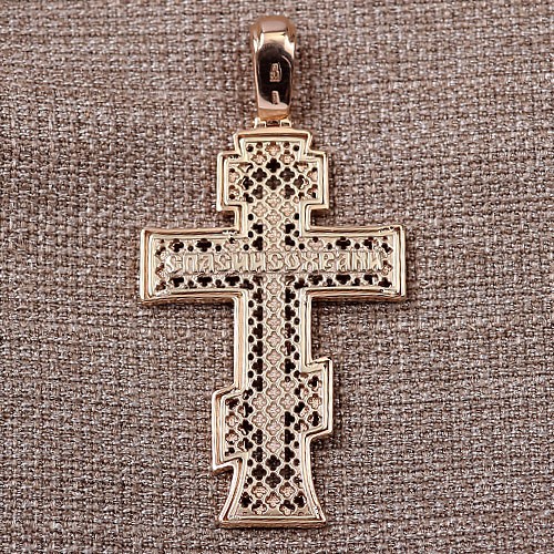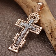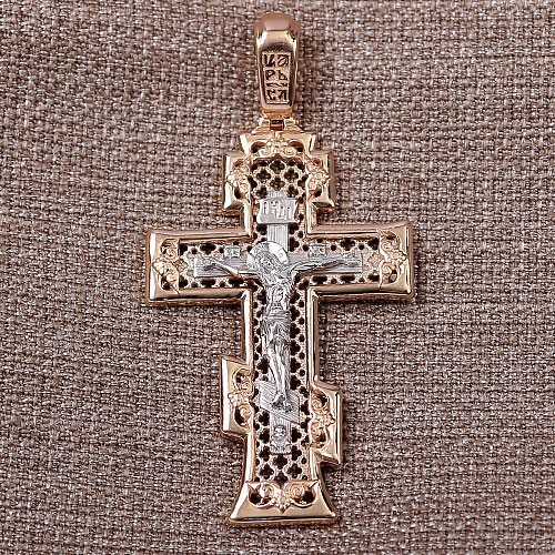 Крестик-кулон из русского золота 585°, двухцветный