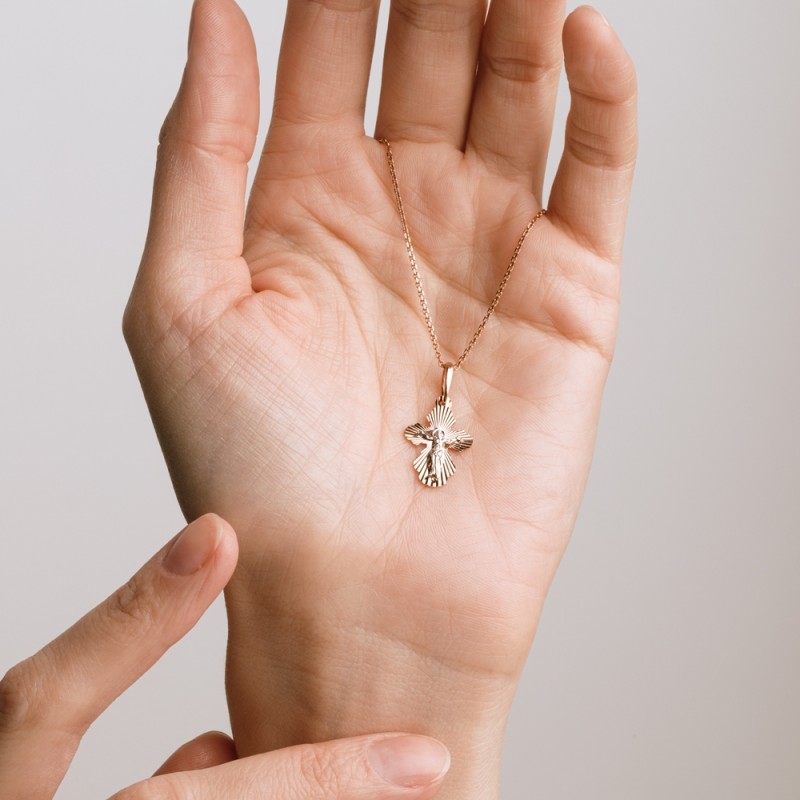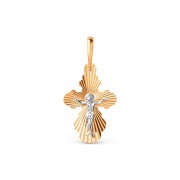 Крест православный золото 585 пробы с распятием. Православный крест из красного золота 585 пробы с корпусом и частичным родированием. Контраст между красным золотом и белым родием подчеркивает распятие.