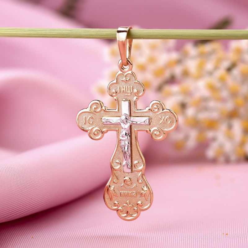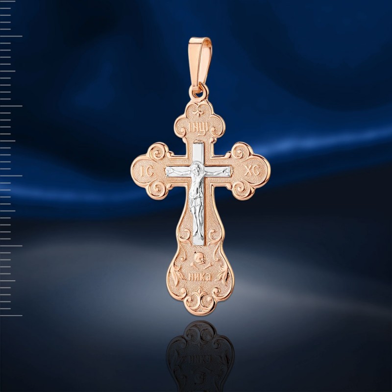 Крестик-кулон из российского золота 585 пробы, двухцветный