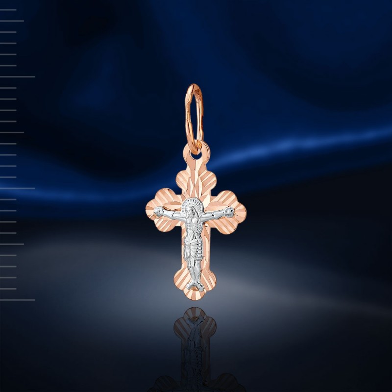Крестик-кулон из российского золота 585 пробы, двухцветный