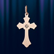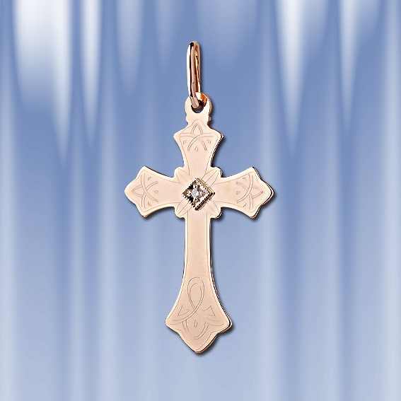 Крестик-кулон из русского золота 585° с бриллиантом 0,01 карат. Длина с ушком около 25 мм, ширина около 11 мм.