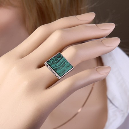 Кольцо с малахитом (20 х 20 мм). Ширина ок. 22 мм