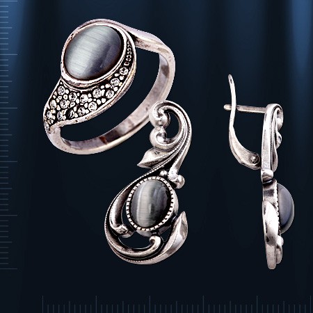 Кольцо с Улексит, цирконий. Ширина ок. 13 мм