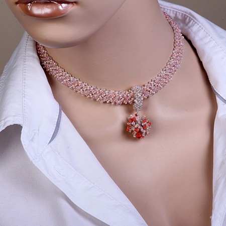 Колье с жемчугом и кораллами. Длина около 32 см, ширина около 12 мм. Высокий кулон около 4 см.