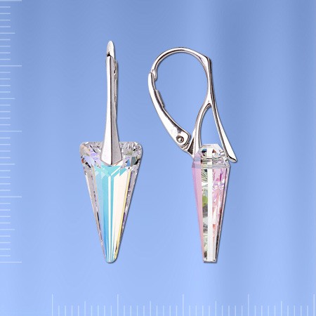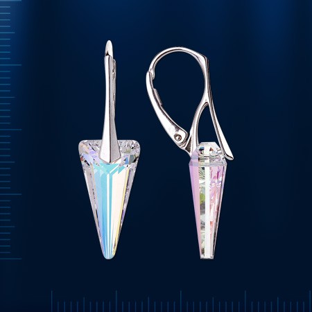 Серьги серебро 925°, родиевая заклепка, украшенная кристаллами Swarovski®(10,0 x 18,0 мм) .