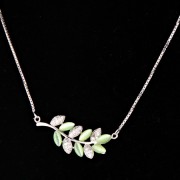 Колье из серебра 925°. Длина около 50 см. Кулон с кварцем (6 х 3 мм), фианитами ¢ 1 мм. Длина кулона ок. 12 мм., ширина ок. 32 мм