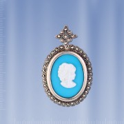 Кулон "Камея" с бирюзой, перламутром и марказитом. Серебро 925°