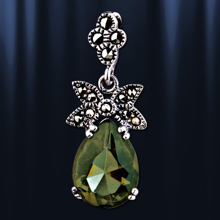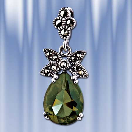 Кулон из черненого серебра 925 пробы с красивой вставкой из циркония и марказита. Длина с ушком около 30 мм. Ширина 12 мм.