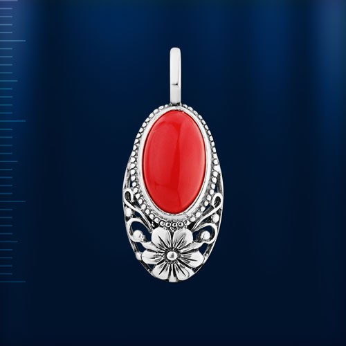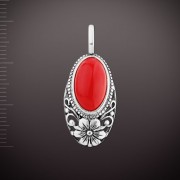 Трейлеры черненое серебро 925 пробы с кораллом (15,0 х 8,0 мм). Высота с ушком ок. 38,0 мм
