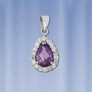 Подвеска из серебра 925° с синтетикой Аметист (6 х 10 мм), фианиты ¢ 2 мм. Высота с ушком ок. 25 мм, ширина ок. 11 мм.