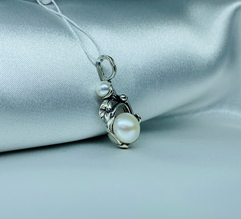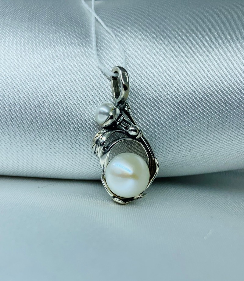 Кулон из черненого серебра 925 пробы с белым натуральным