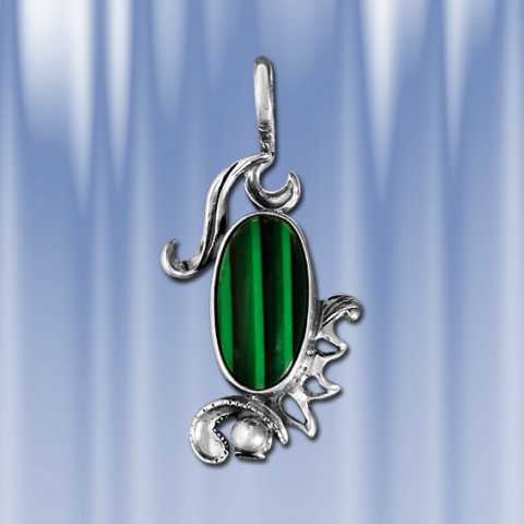 Кулон из черненого серебра 925 пробы с малахитом. Длина с петелькой 34 мм., ширина 15 мм.