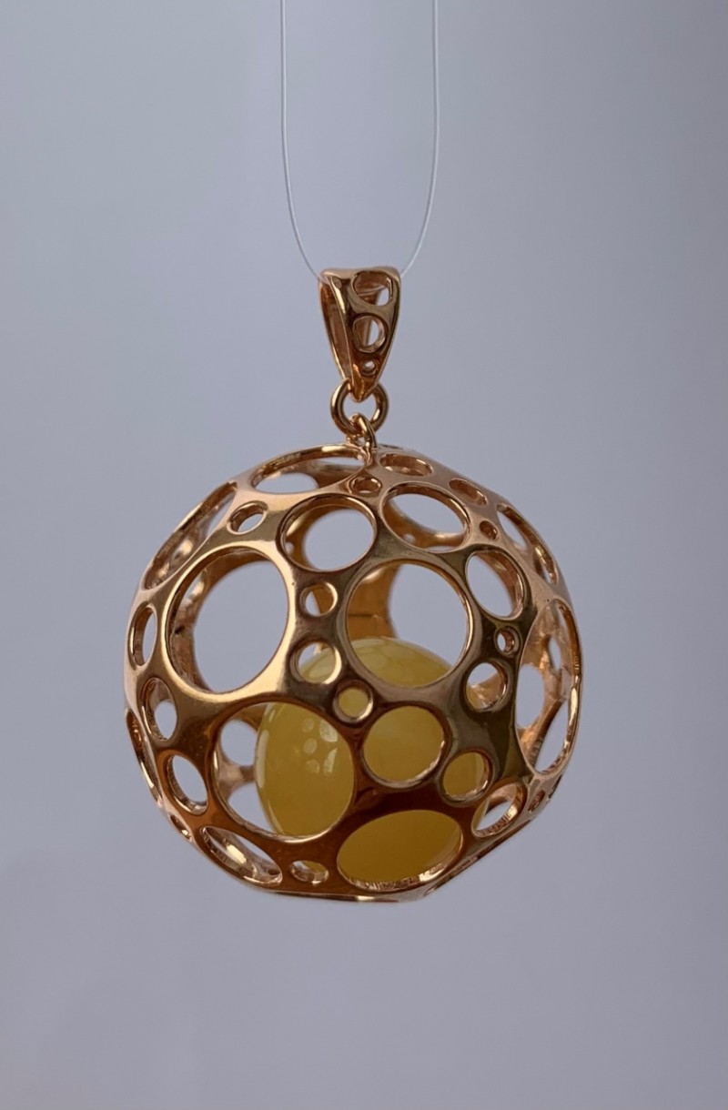 Очаровательный кулон из позолоченного серебра 925 пробы и уникального королевского янтаря с этим удивительным "кусочком солнца". Уникальная возможность подчеркнуть свою индивидуальность, передать образ женственности, солнечности и нежности. Основной характеристикой белого или королевского янтаря является его исключительная красота и ценность, поскольку в природе он встречается реже других.
