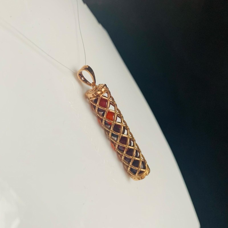 Очаровательный кулон из красного золота с покрытием из серебра 925 пробы и уникального янтаря, с этим удивительным "кусочком солнца" в коньячных тонах. Уникальная возможность подчеркнуть свою индивидуальность, передать образ женственности, солнечности и нежности.